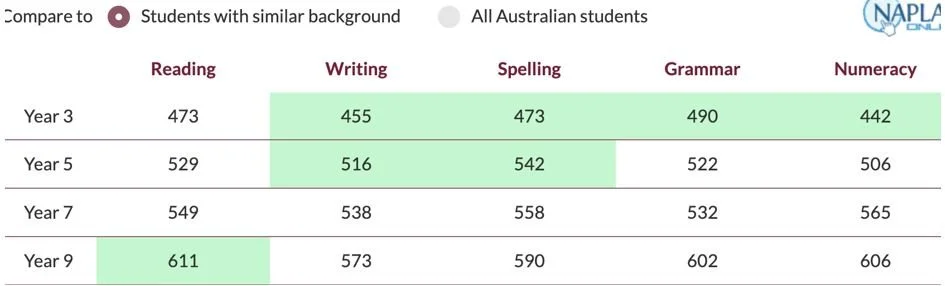The Academy views the NAPLAN as a snapshot of a child's progress on the day and is one of many ways to measure a child's growth.